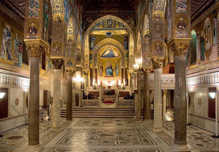 You’ll be dazzled by Capella Palatina an impressive chapel that was designed by Roger II in 1130. It counts as Palermo’s top tourist attraction. There is a three-tiered loggis and lots of amazing gold mosaics. Walk upon marble floors and look up at a wooden muqarnas ceiling that is a masterpiece of Arabic-style honeycomb carving. Many exquisite figurines to see all glittering in gold especially of interest is the depiction of Christ the Pantocrator and Angels on the Dome. The walls of the chapel are decorated with handsome marble inlay.
