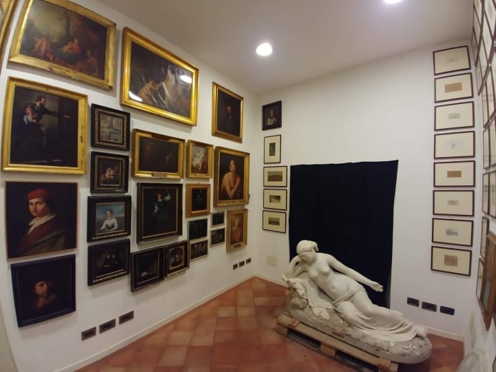 The paintings depict the scenes of Sicily among them Ultime foglie or Last Leaves, 1906 by Michele Catti and Leto’s Saline di Trapani depicting the reflective salt pools of western Sicily by Saline di Trapani.