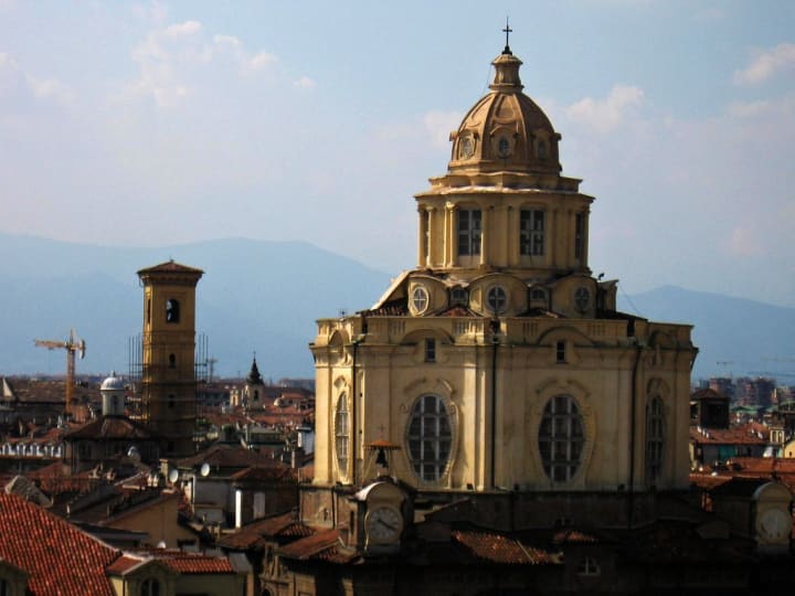 The Church of San Lorenzo is considered architecturally one of the world's greatest churches. The round domed center is surrounded by eight curved bays.