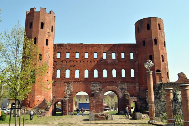 Porta Palatina is an impressive first-century gate and the only one remaining of the four entrances to the Roman city.