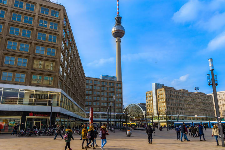 Alexanderplatz is one of the most famous squares in Berlin and the largest. It was named after Russian Czar Alexander I, who visited the capital of Prussia in 1805. After the construction of the Central Market Hall in 1886 and the Tietz Department Store between 1904 and 1911, the square became one of the main shopping areas in Berlin. It became famous when the classic novel “Berlin Alexanderplatz” written by Alfred Doblin, was published in 1929. After being practically destroyed in WW II is was rebuilt in the 1960s and was converted into a pedestrian zone. Here you’ll find the Berlin TV Tower. Alexanderplatz is the largest urban square in all of Germany.