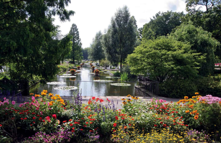 The Botanical Gardens have 22,000 kinds of plants and rank among the three most important botanical gardens in the entire world. They were created between 1897 and 1910, and designed by architect Alfred Koerner. The gardens consist of three areas – the park-like arboretum with woody plants and roses. The exhibition area showcases plants from around the world in their geographical context and the collection of 1,500 types of plants, which have been systematically categorized. There is also a large 3,000 square meter garden with a focus on smelling and touching different kinds of plants for visitors who are visually impaired or in wheelchairs. On the eastern edge of the park are fifteen greenhouses, including a tropical greenhouse which was built in 1907 and counts as one of the largest in the world, and a great example of 19th-century glass and steel architecture.