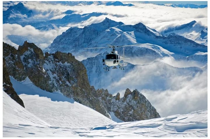 The protected valley is surrounded by three majestic peaks: Ofenhorn, Blinnenhorn, and Basòdino. And because it's so high up (the highest landing spot available is around 10,500 feet), snow falls by the feet every year. To access all that unspoiled backcountry, Heli-Guides maintains a fleet of Airbus AS 350 helicopters, and the menu of options — from easy day trips to full-week packages — means travelers can spend as much (or as little) time in the valley as they like.