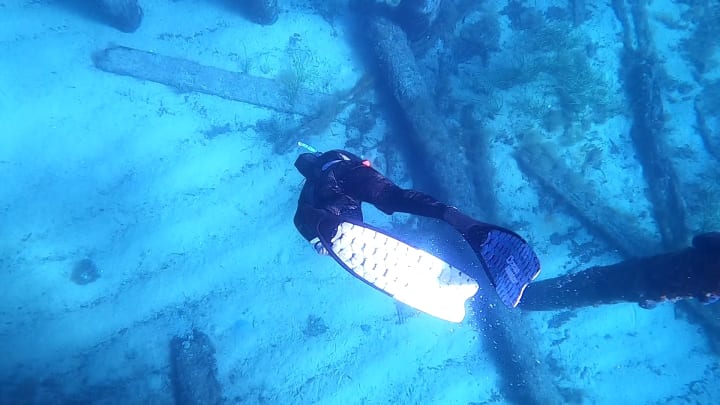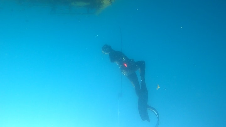 Freediving the Busselton Jetty, southern Western Australia, November 2021. Photo credit: buddy Ryan Jones.