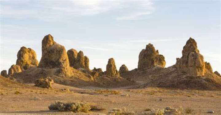 The Trona Pinnacles has been a National Natural Landmark since 1968.. Gigantic pinnacles rise above Searles Dry Lake Basin. There are amazing turfa tower formations.