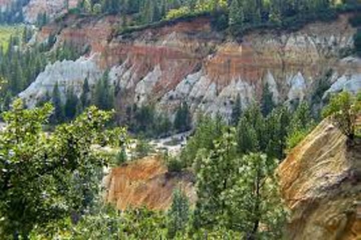 Malakoff Diggins State Historic Park is located northeast of Nevada City. This park is home to the largest hydraulic mining site in California. There are towering cliffs that were carved out by hydraulic mining to wash out gold. The park offers scenic hiking trails.