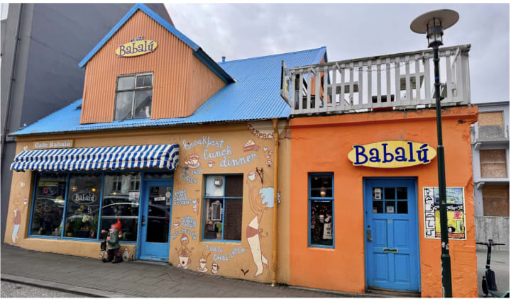 Another café that I stumbled into was called Café Babalū. This funky café is located right down the street from the Hallgrimskirkja. The colorful exterior leads to an equally colorful and exciting interior that is filled to the brim with wall decorations and posters. This café has a "clutter-core" aesthetic to it that definitely makes it stand out (especially when compared to a more clean-cut café like Reykjavik Roasters). I shared a slice of chocolate cake with my boyfriend along with another spiced chai latte. I loved this café because every room felt like a unique experience. We sat in a cozy corner with old furniture while another room had a bunch of different currency hanging from the ceiling. My descriptions of this café don't do it any justice, so I highly recommend that you either research it yourself, or visit it in person (and you're probably working from home so you might as well take your work abroad for a few days)!
