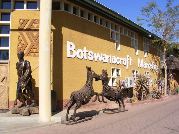 The National Museum and Art Gallery is a museum complex featuring traditional thatched roof houses, art galleries, and a collection of artifacts, ancient paintings, and contemporary art by celebrated Botswana artists.
