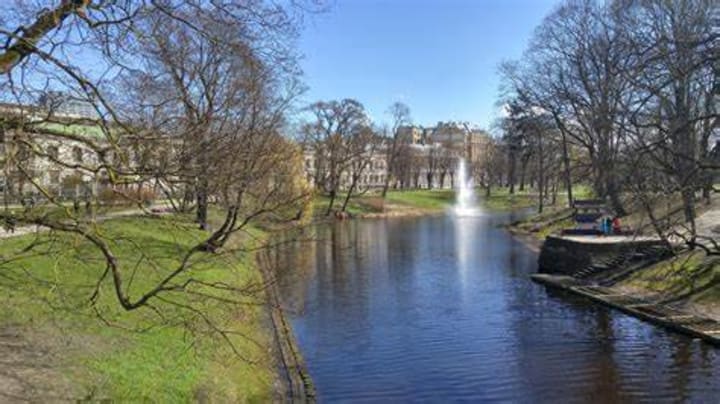 There is a lovely fountain on the Riga Canal which runs through the park.