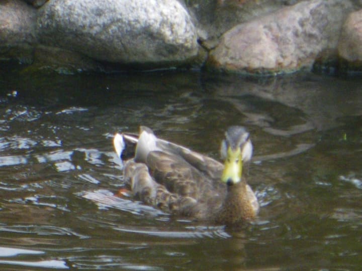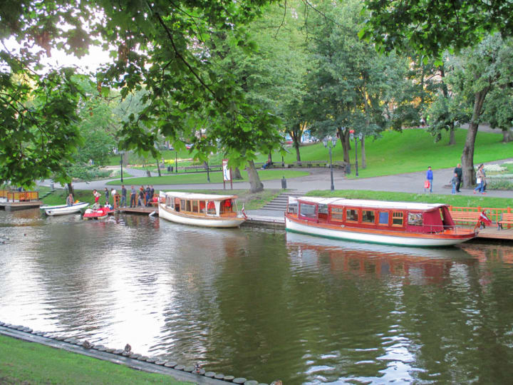 Within the park are statues, small man-made waterfalls, and colorful flowerbeds. People can stroll through this little park and sit on the benches to watch the ducks play in the canal.