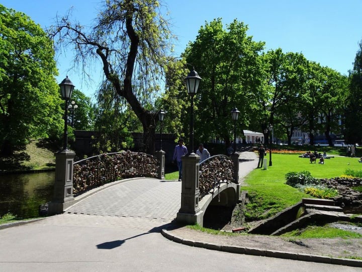 A pedestrian bridge stretches across the canal so you can get from one side of the park to the other. There is also a memorial to the victims that were killed by Soviet Troops in 1991.