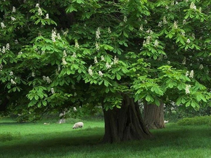 In early June when the old horse chestnut trees start to bloom they look lovely and provide plenty of shade.