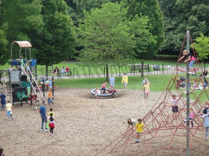 Within the park are many trees to provide shade on summer days. Benches to sit upon and relax. There is a playground for children to enjoy.