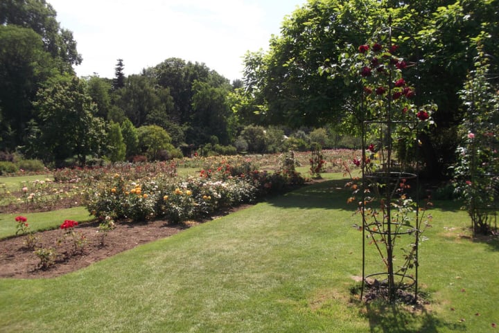 In Vienna, the capital of Austria is the beautiful Volksgarten or People's Garden. This park is designed in the French formal style. It has geometric flowerbeds and a lovely rose garden.