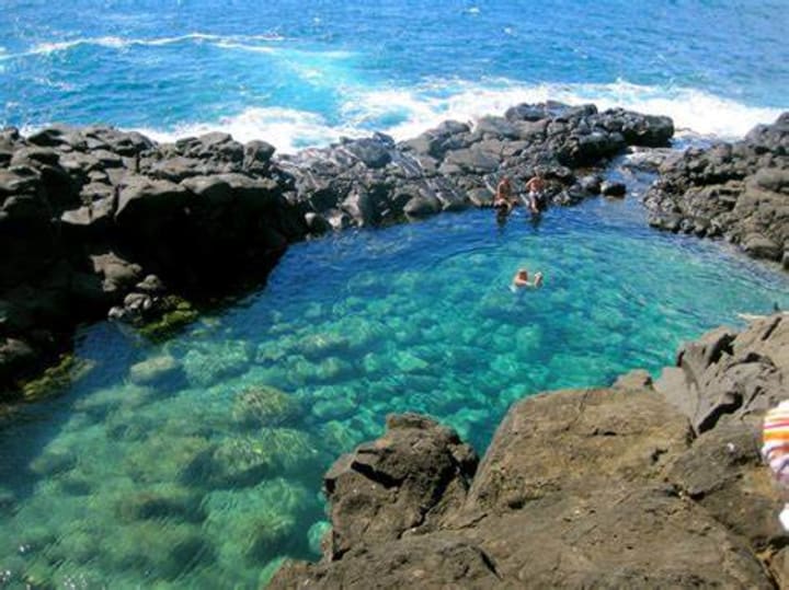 On the island of Kauai, part of the US state of Hawaii in the Pacific Ocean is a popular swimming hole called Queen’s Bath. This nature pool was carved into a lava shelf offering awesome views of the Pacific. There is also a refreshing small freshwater stream.