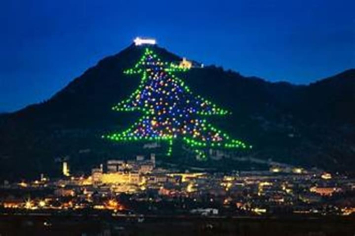 The city of Gubbio, in Umbria, might not have the traditional Christmas tree, but you have to admit they do have a lovely tree with Christmas lights. Being artistic and creative, the city has a Christmas tree on the slopes of Mount Ingino outside of the city.