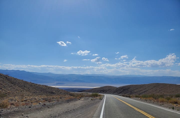 I entered the park at 3:00 p.m. on June 21, playing Eddie Vedder's song Hard Sun; I was spoiled with an open road all to myself for the first hour of my trip. Most of my trip was empty roads, time alone in nature; this is the benefit of desert summer travel. As I wove down into the valley the next song on my CD was I Am Here by Pink. I rolled down my windows singing to the desert that called to me months prior. I felt pride in this journey with myself and nature. I felt grateful that I could afford a lifestyle that allowed me to take a summer vacation, (appreciation during Covid). I felt wise as a woman entering the desert ready to gain what this land had to offer my heart, eyes, and soul.