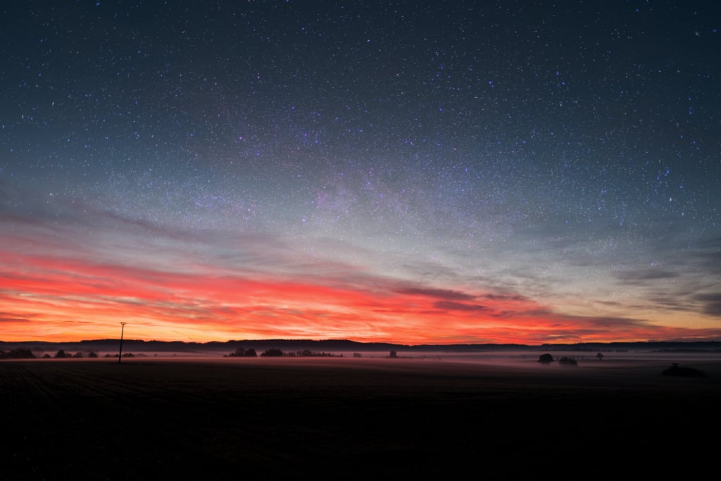 The first stars light up in the night sky. Endless universe above me, of which the earth is but a tiny speck of dust, yet so important because it is inhabited by humans with so many thousand individual destinies as there are galaxies out there in space.