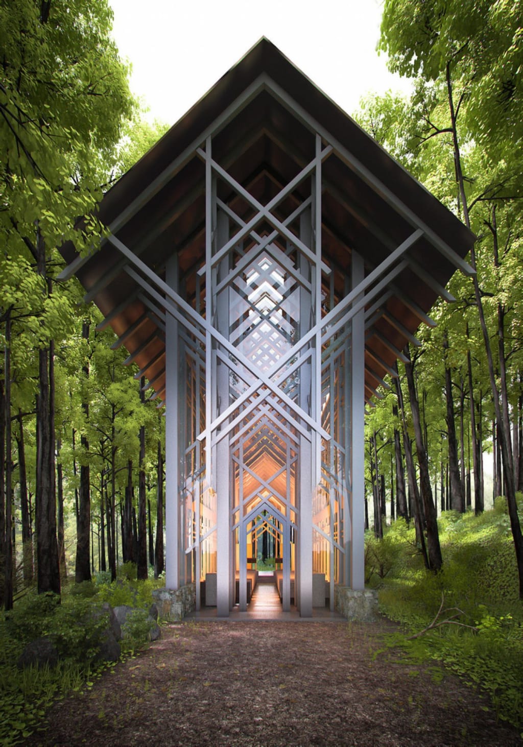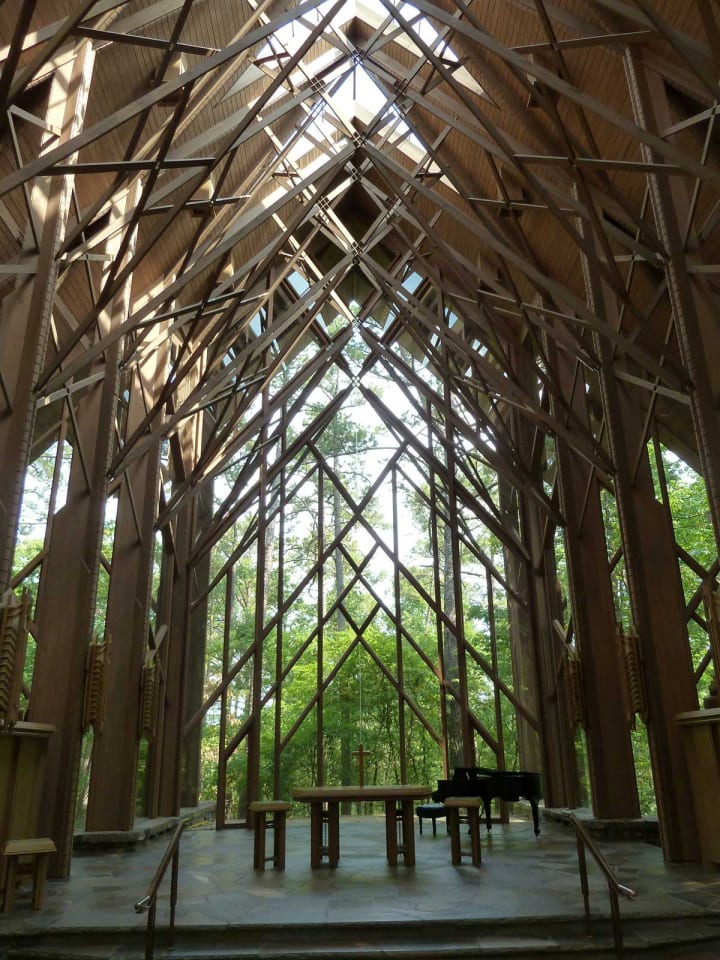 Thorncrown Chapel is a 48-foot-tall wooden structure. It is an amazing place to worship. The chapel is surrounded by forest and has 425 windows as well as 6,000 square feet of glass. It was designed by American architect and designer E. Fay Jones. Public Sunday services are held between April and December and can be rented for weddings all year round. The chapel is closed during January and February.