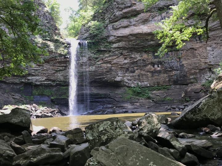 Roark’s Bluff in northwest Arkansas with a trail along the Buffalo River. It offers wonderful views and during high water, there are two magnificent waterfalls – Roark Bluff Falls and V Notch Falls.