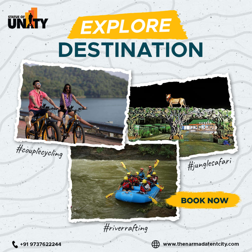 The Narmada Tent City Booking to stay near the Statue of Unity. We offer luxurious tented accommodations and amenities, Book the Narmada Tent City Package.