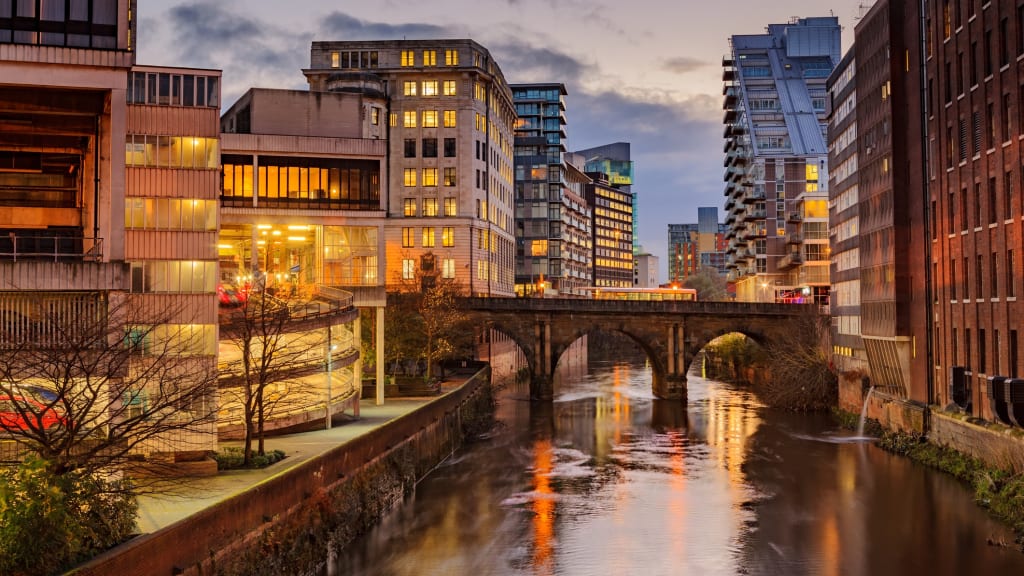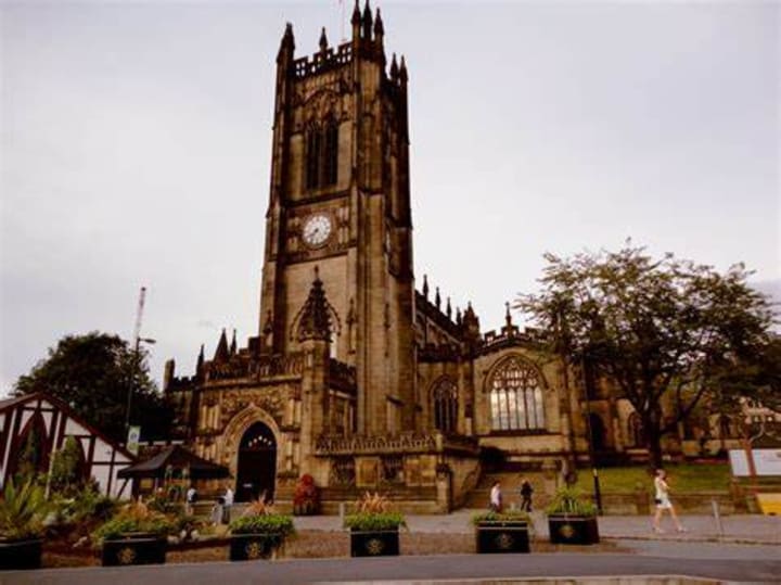 Manchester Cathedral sits on the banks of the River Inwell and is officially known as the Cathedral and Collegiate Church of St. Mary, St. Denys, and St. George. The cathedral was built between 1486 and 1508.