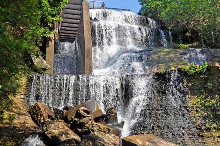Dunn’s Falls was named after their creator, John Dunn who was an Irish immigrant in the mid-1850s. The stream provides a natural source of power via a working water wheel and then crashes seventy feet into the river below. You can enjoy fishing, canoeing, and swimming among the rugged landscape around the Chunky River.