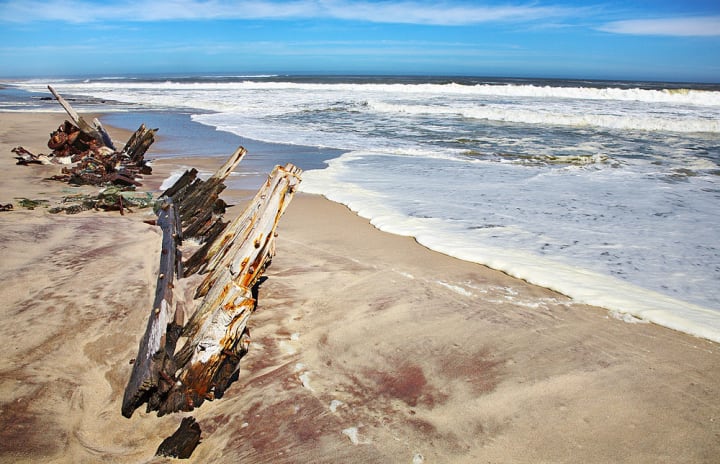 You’ll find endless stretches of sand dunes and amazing Atlantic waves at Skeleton Coast Park. It is at the spot where arid deserts meet the ocean and is famed as one of the most dangerous sections of shoreline in the world. You can see rusting carcasses of old tankers and skiffs, fishing boats, and convoy ships. There are wandering elephants and hyenas.