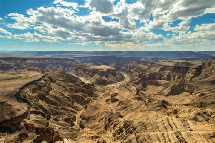 The Fish River Canyon weaves between the great mountains of southern Africa. You can see red-hued rocks rising about the valley, pits of deep sand, and colossal boulders. There are the rugged ranges known as the Three Sisters. There is a hiking path running the length of this amazing place.