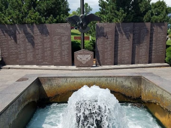 On the shores of Capitol Lake, you'll find the Flaming Fountain Memorial. This is dedicated to the local South Dakotans who fought during the war. The stone memorial has a fountain and a waterfall with an eagle statue honoring the members of the great Sioux Nations who lost their lives in the country's modern war. In the past flames would rise above the water and would begin a dance above the water when gas was directed into the memorial.