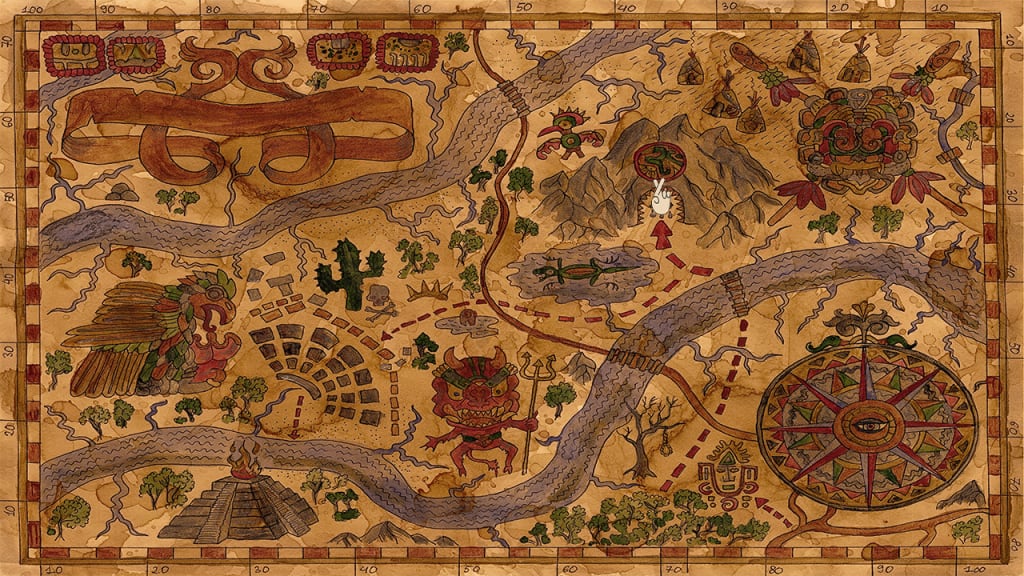 Chances are it's my skeleton smiling at you instead of me... Oh god... I hope it's my skeleton, please let me be a skeleton by the time you find me and not a halfway there, all bloated grossness... yuck. Forget that imagery please. Fortunately, there are so many little critters around I think they'll make quick work of me. I wonder if the venom in me will kill some of them. Does venom work on insects or worms or whatever? If I do get eaten and break down I am technically recycled which I'm all about so, I guess I like that better than the typical coffin situation. So, I am either dead or we are laughing over this wine in hand. Let’s see... What could save me right now? Chaac left for help right after I got bit, we are three days out from a town that maybe has a phone, so best case scenario he gets there and calls an emergency heli evac to find me in this dense jungle, needle meet haystack. What else... someone much more prepared than me who packed the correct antidotes for this region's venomous creatures happens by this secluded grotto, that would be nice. Orrr I internalize this venom and it makes me stronger like Poison Ivy from Batman! Please door number three! If I had to put odds on it, a thousand - a million? - to one I'm a goner. Goner is a funny word am I right? It's weird, I know I'm basically done for but somehow I'm in a peaceful place, just reflecting... could be the morphine I injected to numb the terrible burning pain coursing through my body but, here I am, calm as a cucumber staring up at the chef’s knife. Great idea alert, someone should sell this. Who needs a cocktail or a beer just take two parts venom, one part morphine and three parts dehydration bake in Mexican jungle sauna for a few days and voila! Don't get me wrong, this is definitely a bummer, I. Am. Bummed. A little more time on this big beautiful world, that would have been nice. I haven't even entered the "real world" and I'm already saying my goodbyes which is total BS. This trip was supposed to give me the greatest thesis ever and the doors of every curator and museum would fly open! They would pay me to travel the world exploring and looking for artifacts of past civilizations. Instead I go on my first trip and screw it all up. Anyway, sorry if my last words are weird, I'll make up for it right now, we found it! If you are traipsing around these parts then you probably know what I am talking about and I guess we didn’t “find it” find it, we found out where it definitely is which is just as good if you ask me. Well, at least it should be there. There is no way anyone found the guide post, the area was in total ruin, no one had been there in decades and it's the only thing that points to the final resting place of the artifact. Maybe it's the delirium or the venom eating my brain but I think it would be fun if you had to solve something instead of me just handing it to you on a silver platter. Yea, I had to work for it, and now you do too! Just, think about where you are the people and the heritage. OK, ready?