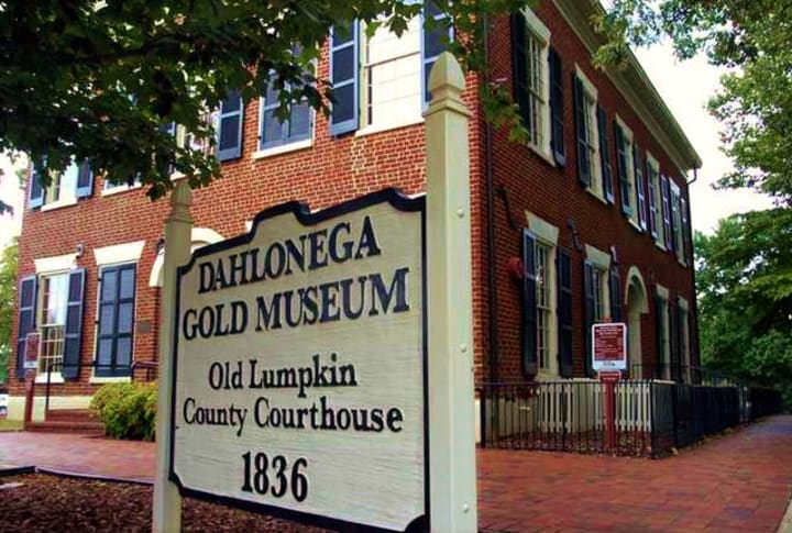 Dahlonega Courthouse Gold Museum prospectors came rushing to this area when word spread that gold had been found here in Cherokee country in 1828. This led to the illegal annexation of much of the Indian’s ancestral land. In less than 10 years more than $1.7 million in gold had been shipped to the Philadelphia Mint. One of the new districts created from Cherokee Territory was Lumpkin County. Dahlonega takes its name from a Cherokee word meaning “precious yellow” and it became the county seat. Today one can visit the handsome 1836 brick building which served for nearly 130 years as the courthouse.