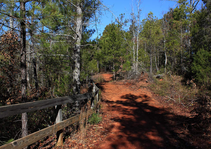There is a two-mile trail called the Canyon Rim Trail which has 20 overlooks. It winds past clumps of sumac and stands of hickories and slash pines. One may see raccoons, opossums, and hawks circling overhead. The park also offers picnic groves, two short trails leading to the canyon floor, and an eight-mile backpacking trail.