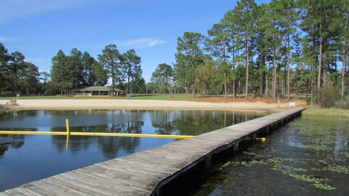 You can also view the lake from rented cottages, tents, and trailer campgrounds which are shaded by longleaf pines, poplars, sweet gums, and cedars. Pioneer camping is available in the more remote areas of the park where the blooming of dogwoods and wild blackberries signal the arrival of spring. Bird watchers can view several species of large hawks and the gopher tortoise which is an endangered species can also be found here. Observant visitors may also see alligators, osprey, bald eagles, and other wildlife.