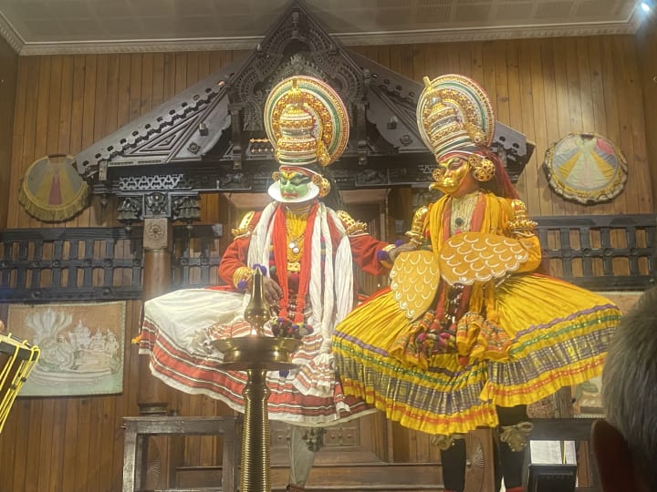 Kathakali is an ancient Indian dance. One of the oldest art forms in India, it is one of the eight classical dances in India. The art is based on ‘the story’ and is characterised by the vivid, colourful makeup worn by the characters. The performance also includes watching the performers put on their makeup. It is native to the state of Kerala and to speakers of Malayalam.