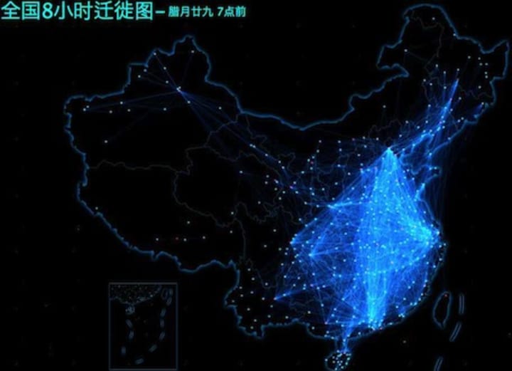 The Next Web reports that Chinese search company Baidu launched a Chinese New Year migration map that they update hourly for 8 hours daily showing the most popular migration routes.