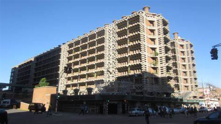 Eastgate Center was inspired by the ruins of Great Zimbabwe. This shopping complex was designed based on a termite mound, allowing for natural cooling and ventilation. It was completed in 1996 and uses 10% of the energy of other buildings its size. The complex was designed by Harare architect Mick Pearce, who has worked on similar eco-buildings all over the world.
