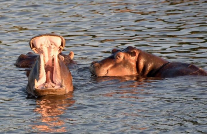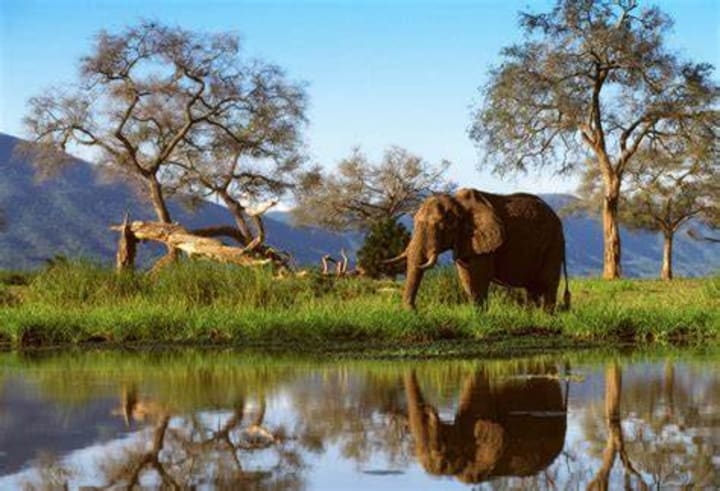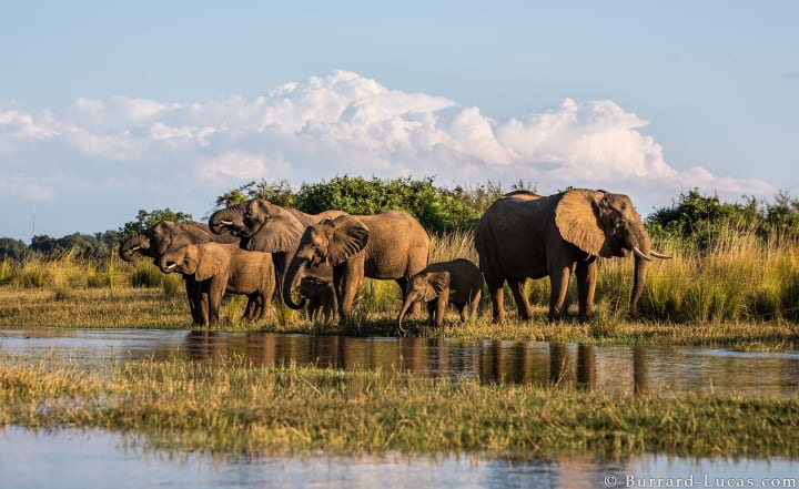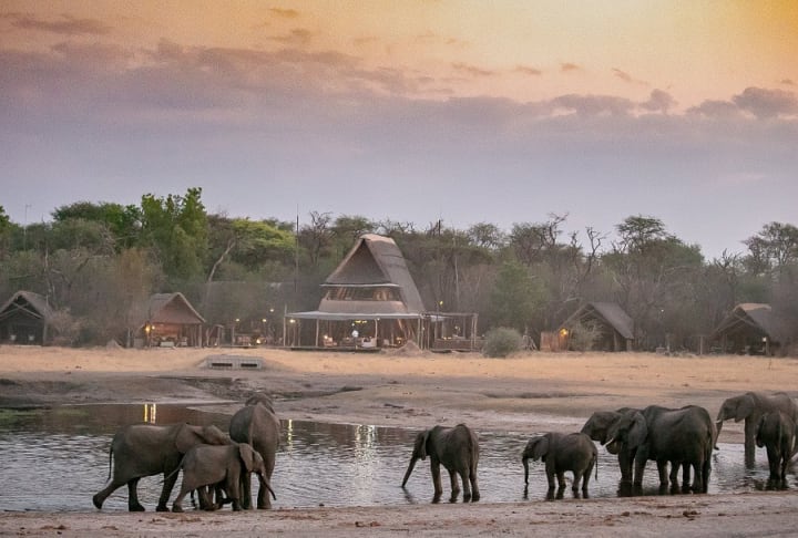 Mana Pools National Park is fed by the Zambezi River which spills onto the plains and grasses after rainfall creating a patchwork of watering holes and pans during the wet season. Animals gather here to drink and you can see crocodiles and hippos.