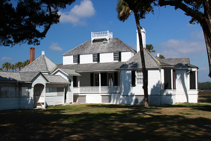 Kingsley Plantation is located on Fort George Island east of the city. It includes a Southern mansion dating to pre-Civil War days. Besides the plantation house, there is a kitchen house, a barn, and the remains of about 25 slave cabins. Before the Kingsley family Native Americans lived here for over a thousand years. Visitors say the plantation is haunted. Guided tours are available.