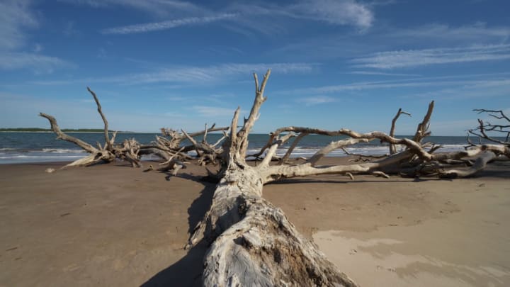 Big Talbot Island State Park includes a popular beach Boneyard Beach with its famous dead, bleached live oaks.