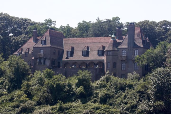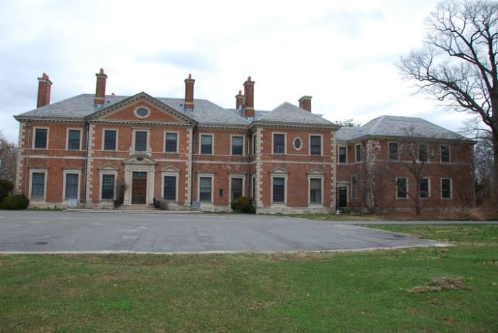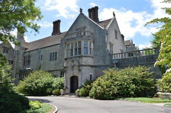 Hampstead House is a Tudor-style mansion with 40 rooms. Outside is a rose garden and terrace offering fantastic views of the Long Island Sound.