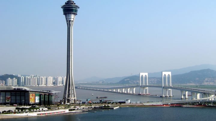 Rising high above Macau is the 336m Macau Tower. Observation decks are on the 56th and 61st floors. If you are into some real excitement you can try the climbing wall, a bungee platform that is supposedly the highest commercial bungee jump in the world, a skywalk around the rim of the tower, and more daredevil stuff.