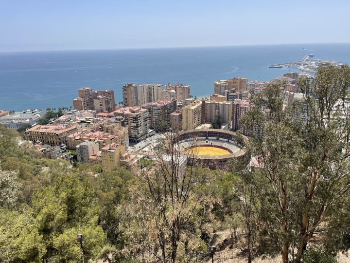 My family and I visited the Castillo de Gibralfaro on the last day before returning to Germany. The road up to the castle was curvy, which reminded me of my adventure driving along the mountain road in Santa Margherita, Italy. When we arrived, we paid the small entrance fee and went inside. The views from the castle wall are beautiful. On one side are the views of the mountains in the distance, and the other is the harbor and Mediterranean Sea beyond. Below the castle was a Bull Fighting Ring. The castle served as a fortress and a lighthouse during the period of the Moors and later conquered by the Christian kingdoms during the Reconquista.