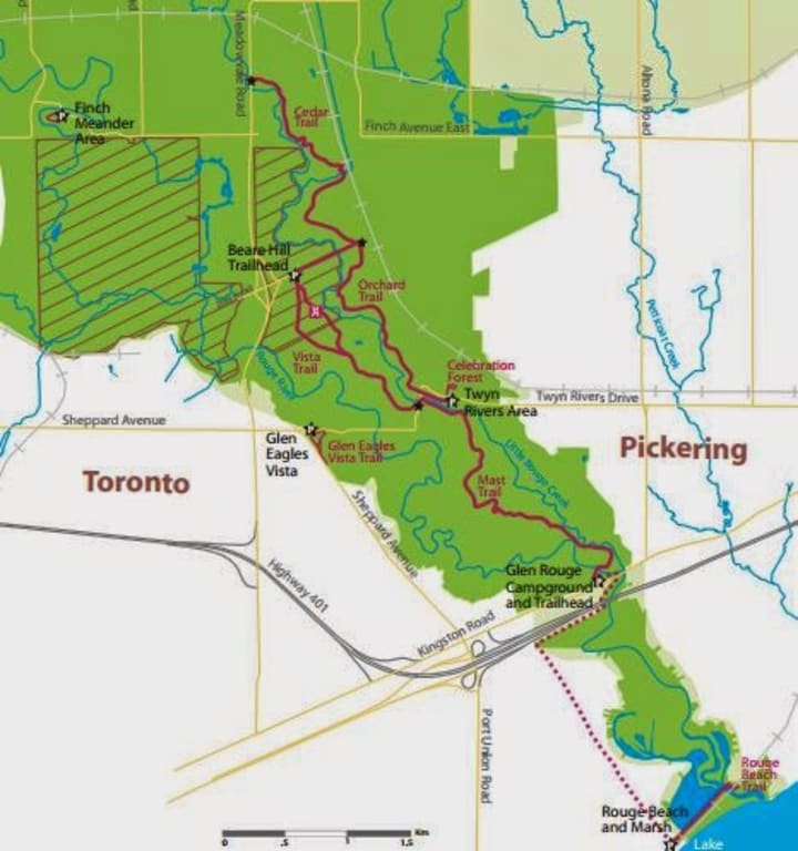 The forest sprawls far and wide throughout the park, passing through several cities and municipalities that border Toronto and Pickering. This gives visitors several points of access to the park and its available amenities, making it a hub of both natural and human life. It's the only national park in the Greater Toronto Area (which is the most densely populated area in Canada) so people from all over the place come to visit.