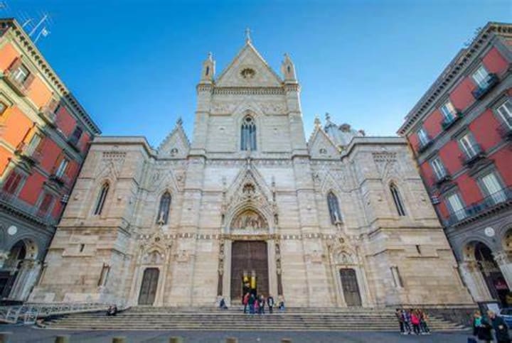 The impressive Naples Cathedral was initialed by Charles I of Anjou in 1272 and consecrated in 1315. A neo-Gothic facade was added in the late 19th century. Inside is a gilded coffered ceiling in the central nave. The high sections of the nave and the transpet are the artwork of Baroque artist Luca Giordano.