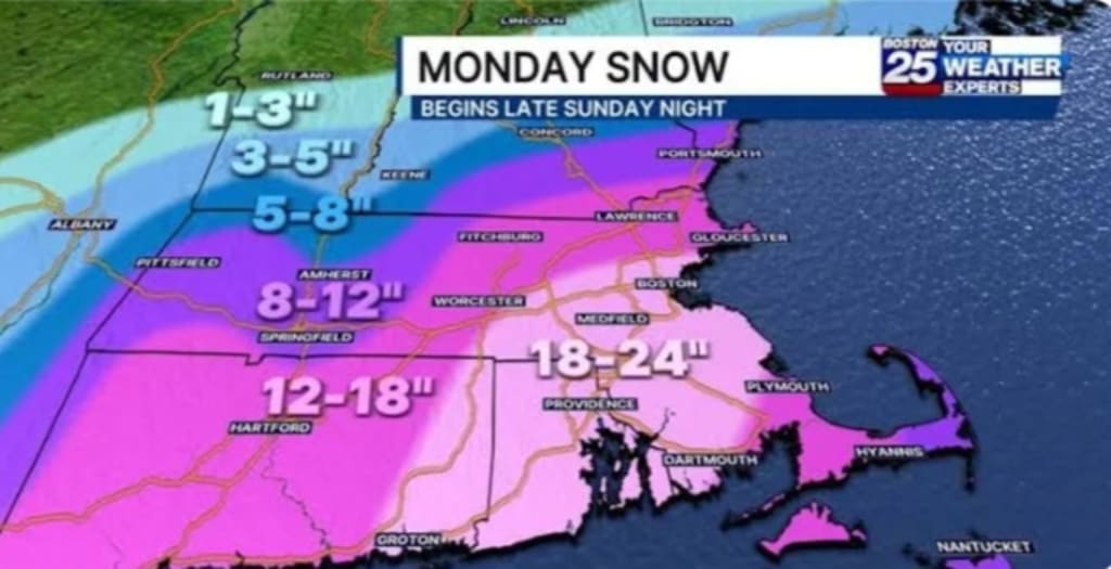 New Snowfall Map: Late Sunday–Monday Nor’easter Expected to Bring Heavy Snow to Massachusetts