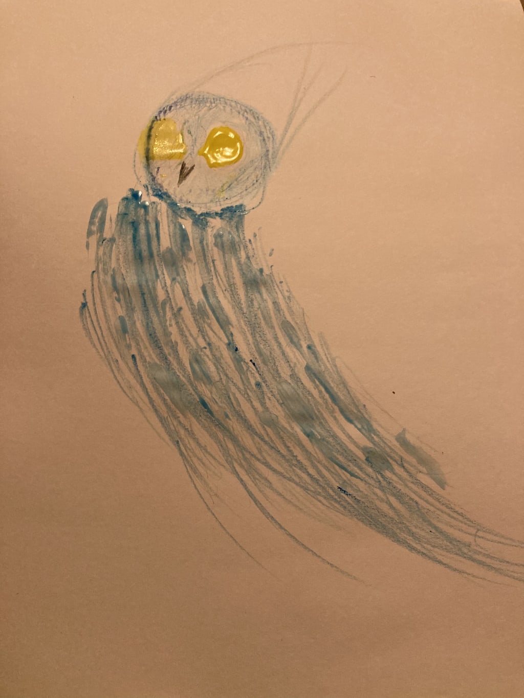 Brush sliding on paper creating blue sparkles. We don’t know how to have a good time at all.. Observe from distant point from out of your mind. You will see the patterns in chaos, you will hear melody in silence. You will find your owl, you will solve your own mysteries.