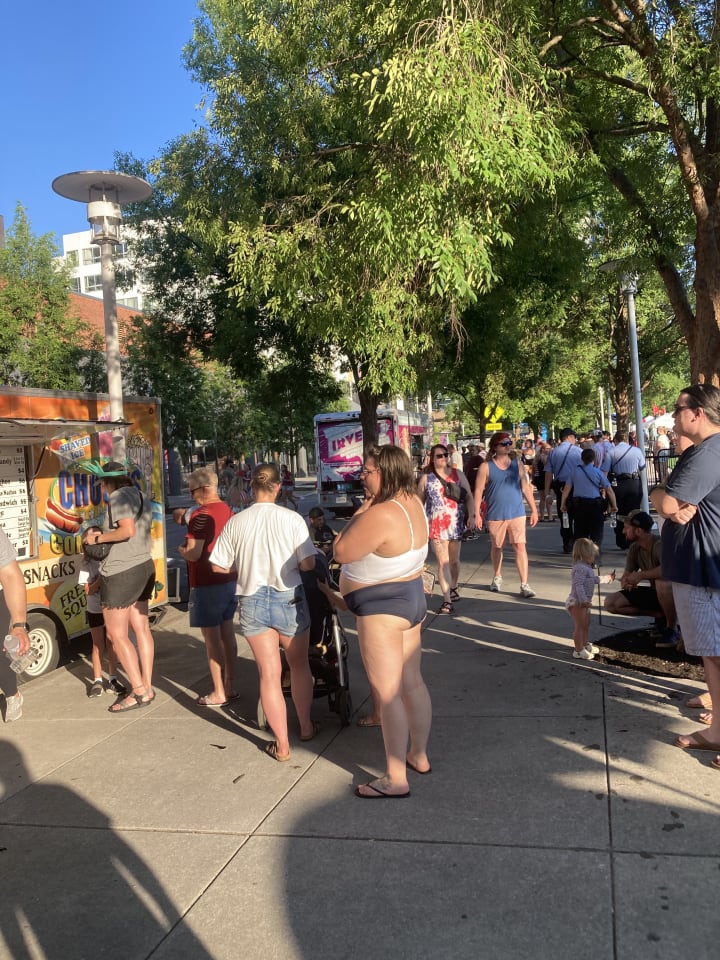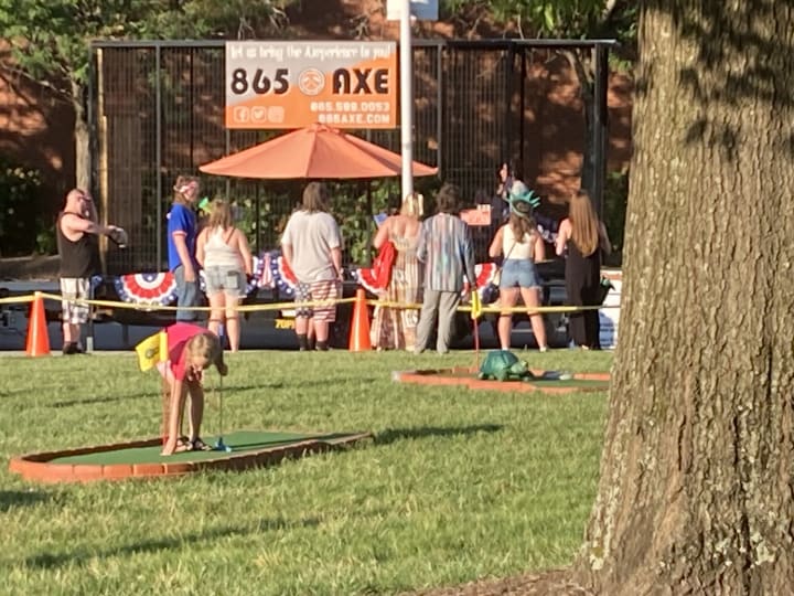 The streets are cut off from traffic on this day, making it a safe environment. Dotted around the area are vendors. Some of them, such as the axe throwing, mini-golf, the news and radio stations that are giving away beach balls, patriotic medals, and other little trinkets and souvenirs for the kids are completely free. The exception to this gesture is the food vendors. Ice cream, tacos, shaved ice, burgers and nachos, a coffee truck, and other manners of food vendors line the main street.