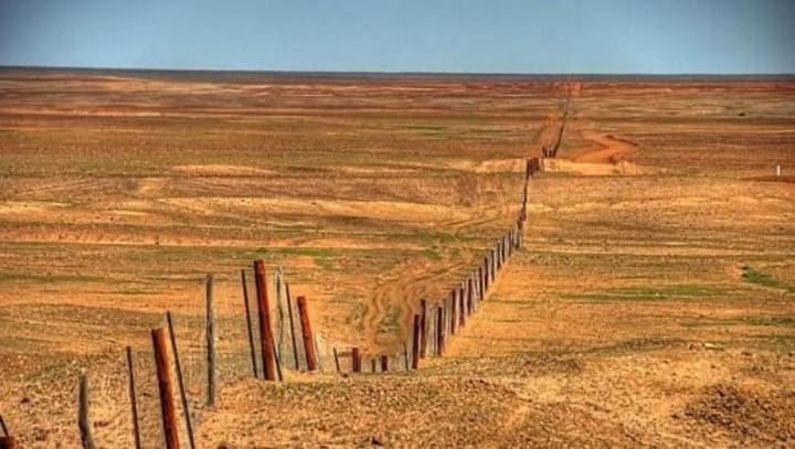 Heading east along the hills is the Dog Fence. This 2 m high wire barrier stretches for more than 5,300 km across three states built to protect the sheep country in the south from the native dog – the Dingo. This fence counts as the longest continuous construction in the world. It begins east of Surfer’s Paradise in Queensland and ends up north of Ceduna in the Great Australian Bite. Along the fence you can see the desert-like moonscape with fossilized shells and the grey, soft clay dirt has cracks that seem to resemble moon craters and has been nicknamed the “moon plain”.