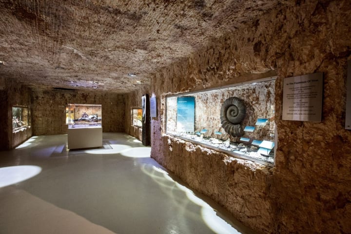 A most unusual underground museum is the Umoona Opal Mine and Museum. It also contains an Aboriginal Interpretive Center which is an underground home and an original opal mine. Visitors can see an eighteen-minute documentary “The Story of Opal” in the underground cinema. There are permanent displays of fossils from the South Australia Museum and you can see an impressive collection of some of the finest opals.